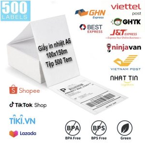 Giấy in nhiệt A6, 100x150mm, 4×6 Giấy in nhiệt vận chuyển dạng xấp 500 tem