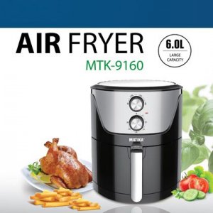 Sở hữu thiết kế hiện đại, tông màu đen- xám sang trọng, nồi chiên không dầu Matika MTK-9355 (5.5L) với công nghệ Rapid Air cho món chiên – quay – nướng đơn giản và tiện lợi, tiết kiệm thời gian nấu ăn tối đa.